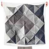A Word from the Artist: “This design is based on the Japanese tradition of origami. Continuing with the theme of folding and wrapping, this design depicts a folded piece of paper, exploring three dimensionality through line and pattern. At first glance, a quarter of folded furoshiki appears to be decorated with nothing more than bold stripes, but viewed as a whole it transforms into an intricate trompe l’oeil.”