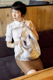 The removable leather straps are easy to use & don’t damage the cloth, so you can switch between using your Furoshiki as a scarf or bag (although you may want to gently iron out any creases).